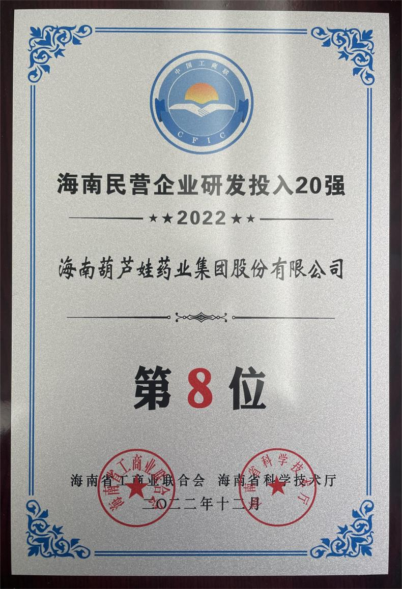 12月23日,2022海南民营企业50强和研发投入20强发布会在海口举行。会上发布了“2022海南民营企业50强”“2022海南民营企业研发投入20强”榜单和分析报告。EBpay药业再次荣登两榜,在海南民营企业50强榜单中位列第25位,较去年上升8位,这也是公司连续三年登榜;在海南民营企业研发投入20强中位列第8位,较去年上升7位。